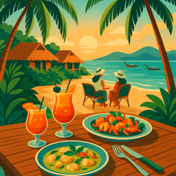 * Peter peut alors profiter du dîner avec ses amis à Coco Palm Beach Resort, Ko Samui ตำบล แม่น้ำ !