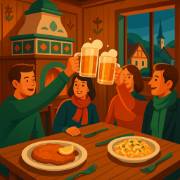 * Peter peut alors profiter du dîner avec ses amis à Goldener Stern Friedberg !