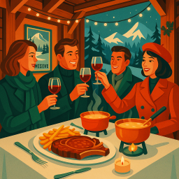* Peter peut alors profiter du dîner avec ses amis à La Ferme Saint-Amour Megève Demi-Quartier !