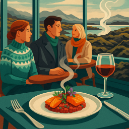 * Peter peut alors profiter du dîner avec ses amis à Moss Restaurant Grindavík !