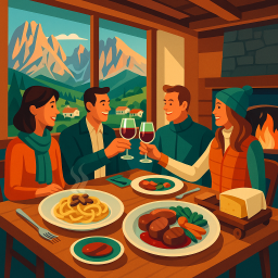 * Peter peut alors profiter du dîner avec ses amis à Ristorante Malga Panna !
