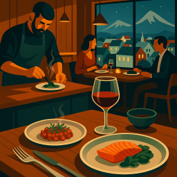 * Peter peut alors profiter du dîner avec ses amis à ÓX Reykjavík !